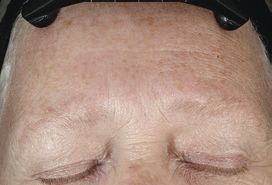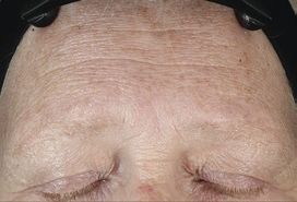 IMPROVEMENT IN THE APPEARANCE OF FOREHEAD LINES: FEMALE, CAUCASIAN, AGE 65, FITZPATRICK SKIN TYPE II. UNRETOUCHED PHOTOS TAKEN WITH