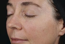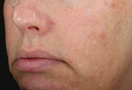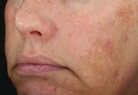 IMPROVEMENT IN VISIBLE HYPERPIGMENTATION: FEMALE, CAUCASIAN, AGE 40, FITZPATRICK SKIN TYPE II. UNRETOUCHED PHOTOS TAKEN WITH STANDARD