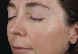 IMPROVEMENT IN TEXTURE, APPEARANCE IN FINE LINES, AND OVERALL GLOW: FEMALE, CAUCASIAN, AGE 48. FITZPATRICK SKIN TYPE II. UNRETOUCHED PHOTOS TAKEN WITH STANDARD LIGHTING. RESULTS FOLLOWING 3 DIAMONDGLOW® TREATMENTS WITH SKINMEDICA® HA5 ® HYDRA COLLAGEN PRO-INFUSION SERUM ADMINISTERED 2 WEEKS APART AND A CURATED SKINMEDICA® SKINCARE REGIMEN. INDIVIDUAL RESULTS MAY VARY